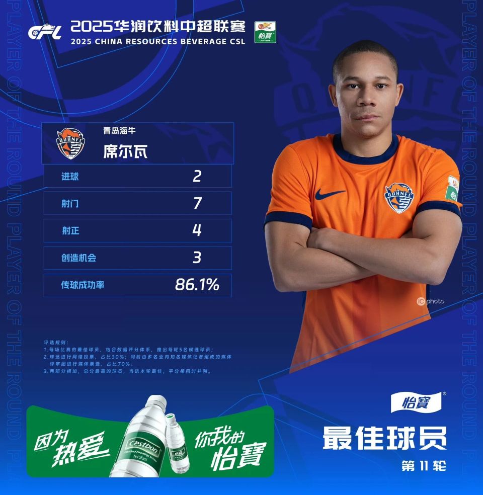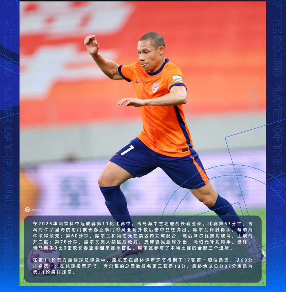 总分97分!海牛萨里奇荣膺中超官方第28轮最佳球员